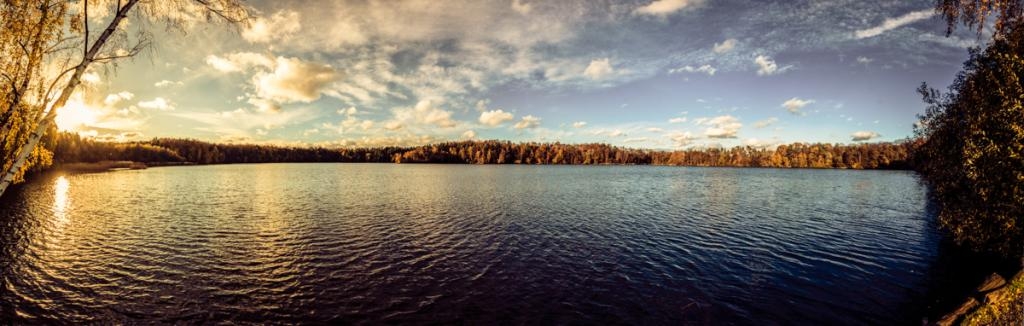 Solange wir noch keine aussagekräftigen Zimmerfotos machen können, habe ich zusammen mit Bastian Dammers, unserem Fotografen, die Umgebung unsicher gemacht. Weit mussten wir nicht laufen, denn direkt gegenüber unserem Bed & Breakfast erstreckt sich ja die Ville mit ihren zahlreichen Seen. Und so stand uns an einem der letzten, schönen Herbsttage der Berggeistsee Modell und hat sich – selbstverständlich extra für uns – ordentlich in Schale geschmissen.